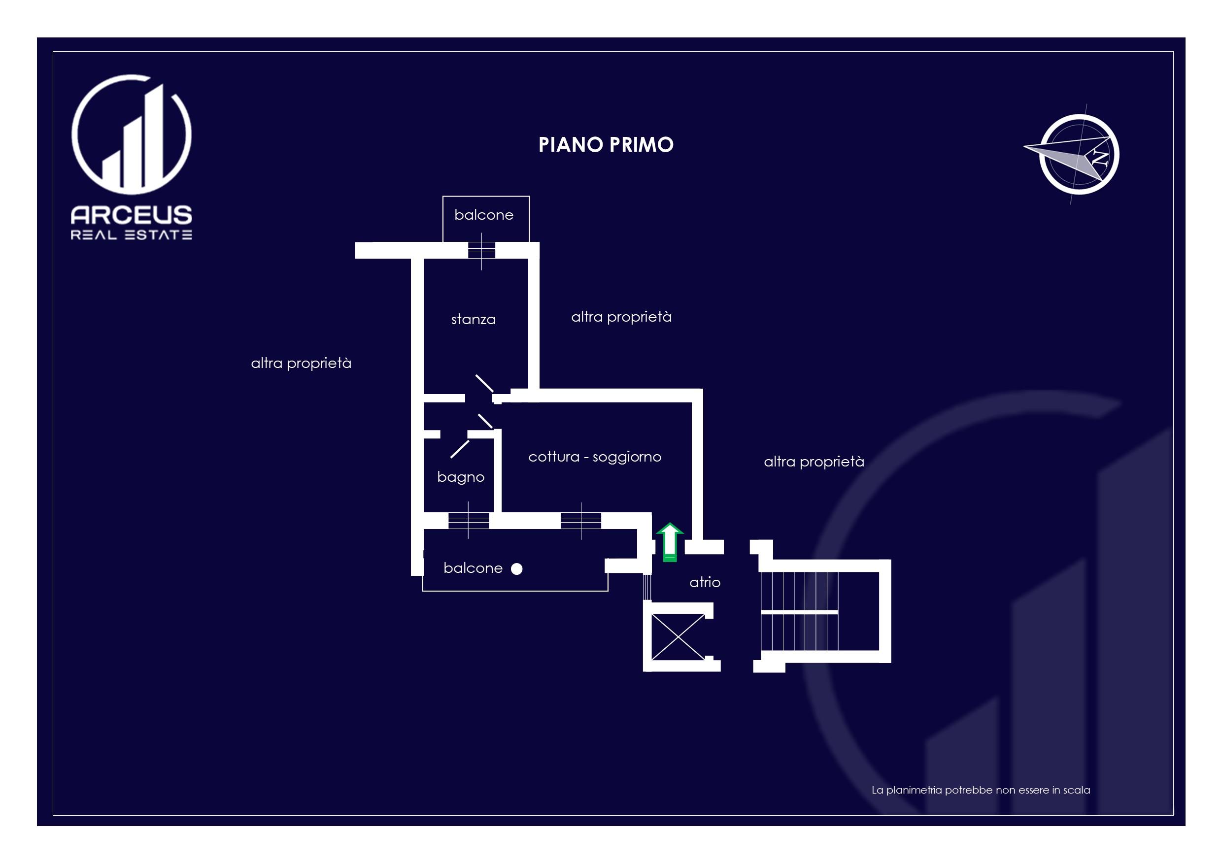 L’appartamento si compone di: ingresso, angolo cottura/soggiorno con ampio balcone, disbrigo, bagno finestrato, stanza da letto matrimoniale con balcone.