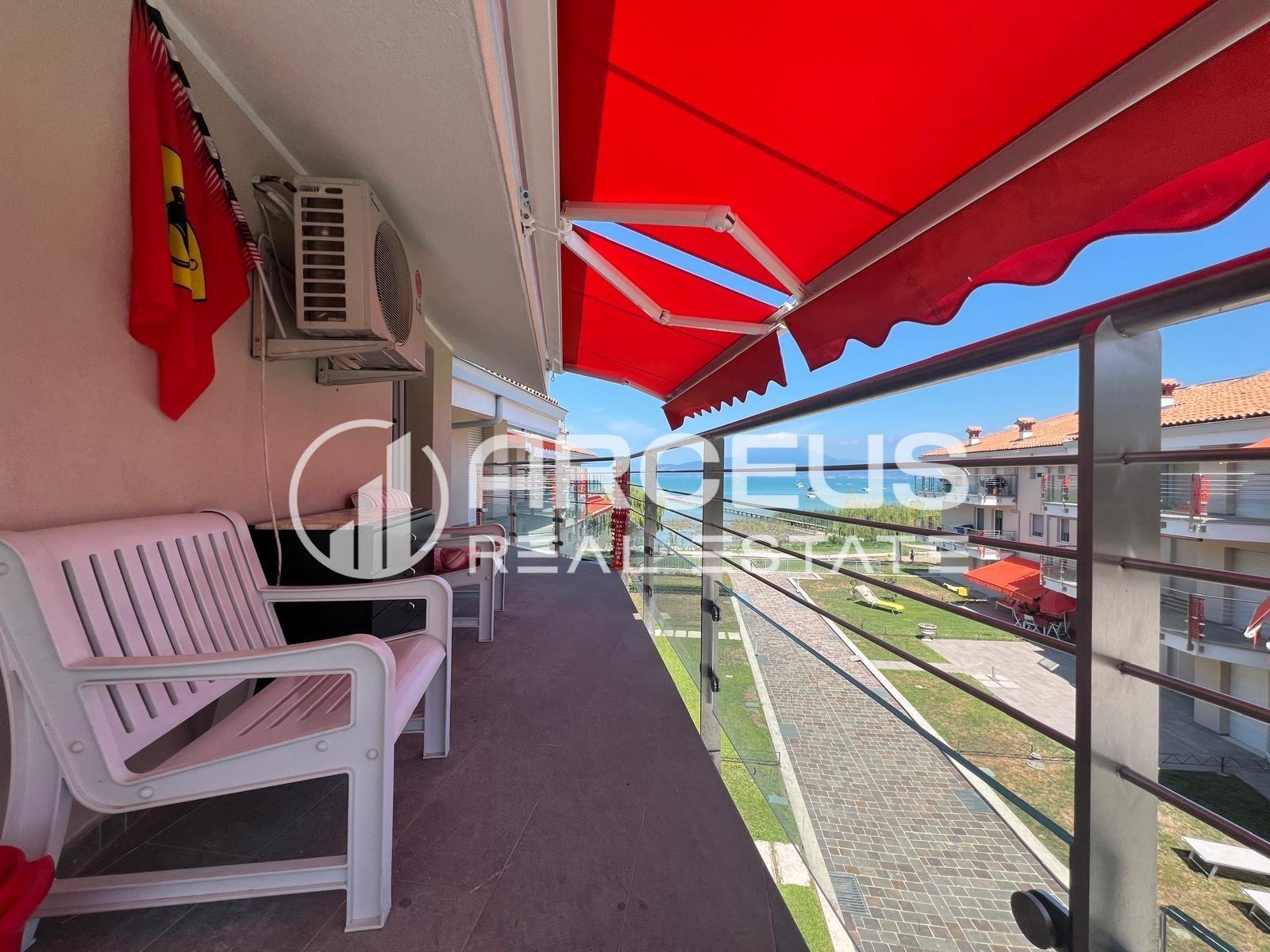 In Sirmione we sell in exclusive two-room apartment mq 70 located on the second and last floor with Southeast exposure of the Residence “Yacht Club Costa d’Oro”. The property complex was completely renovated in 2023 with Super Bonus 110%. The residential unit consists of: entrance hall, hallway, double bedroom, windowed bathroom, kitchenette, large living room with access to the terrace with lake view. The property is completed by a covered parking space located in the basement.
