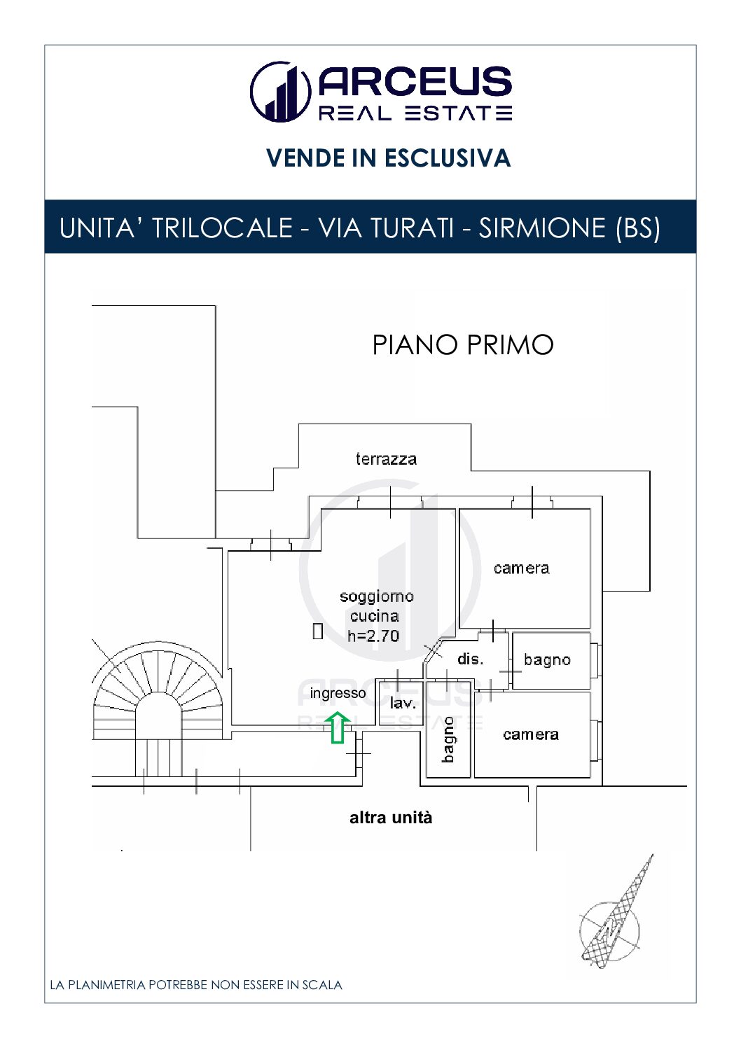 In Sirmione (BS), in der Via Turati, verkaufen wir eine Dreizimmerwohnung von 110 m², die 2020 renoviert wurde und sich im ersten Stock eines Komplexes in einem Wohngebiet in der Nähe des Sees befindet.